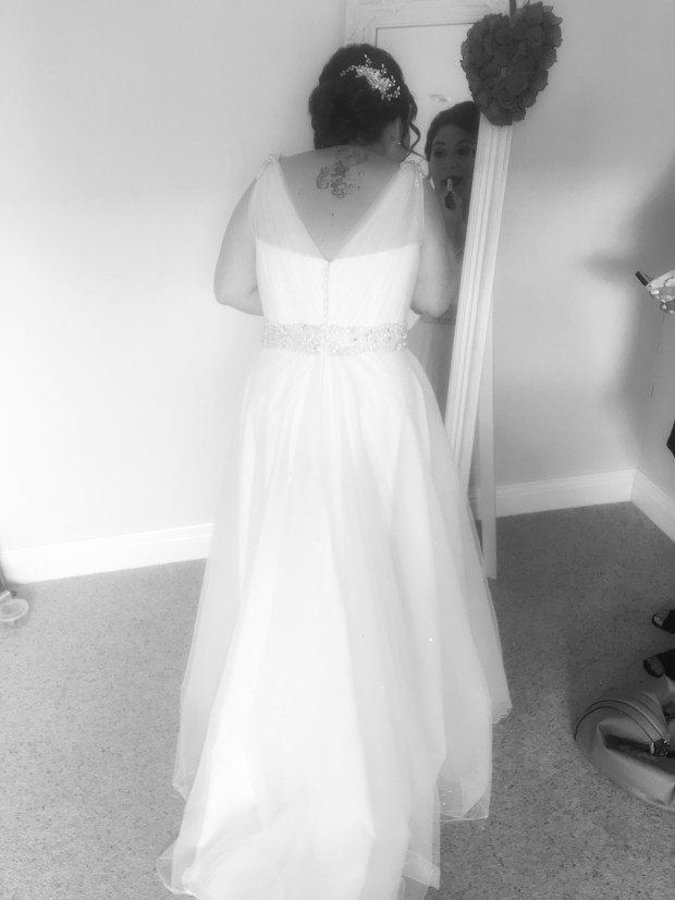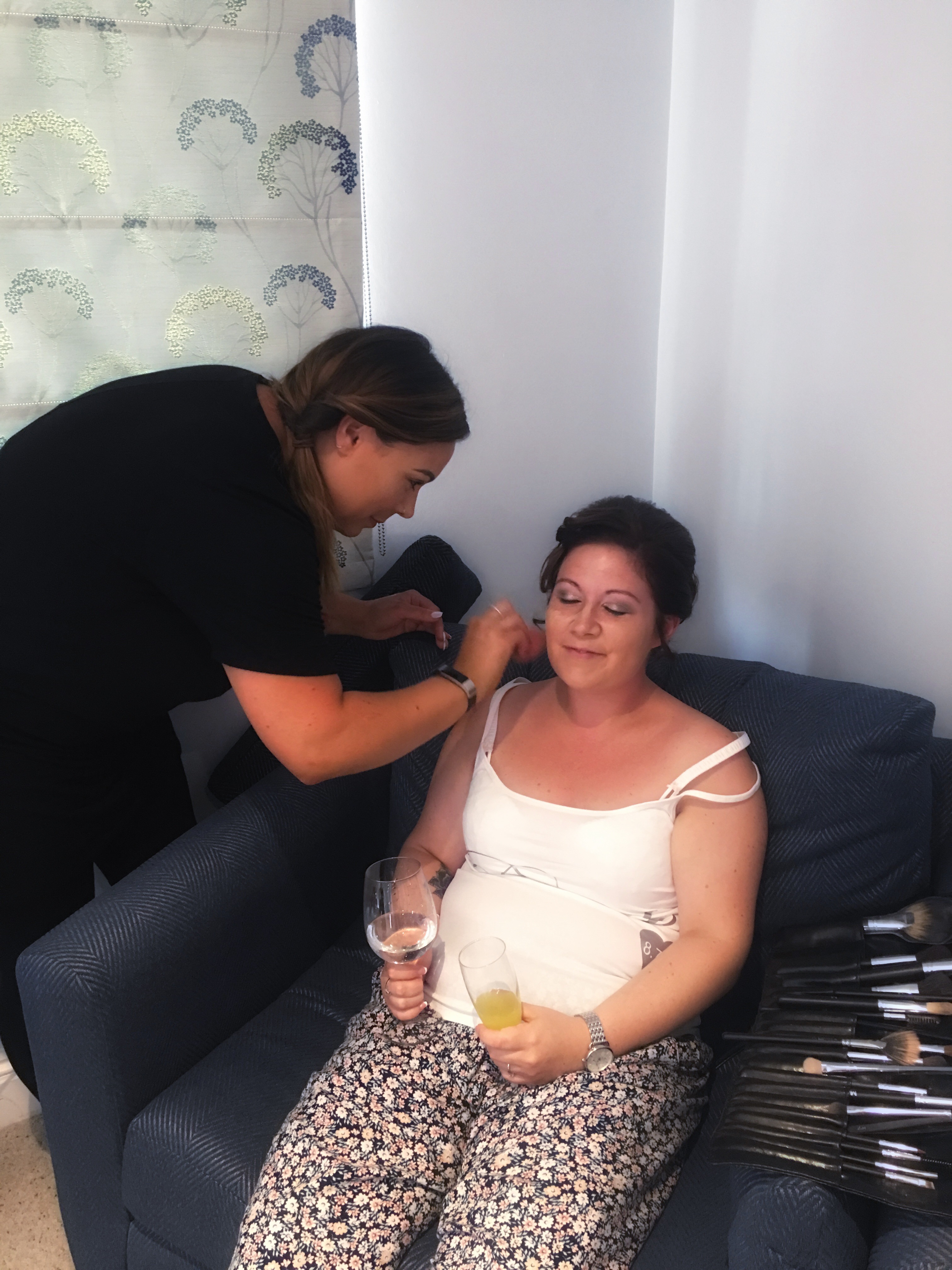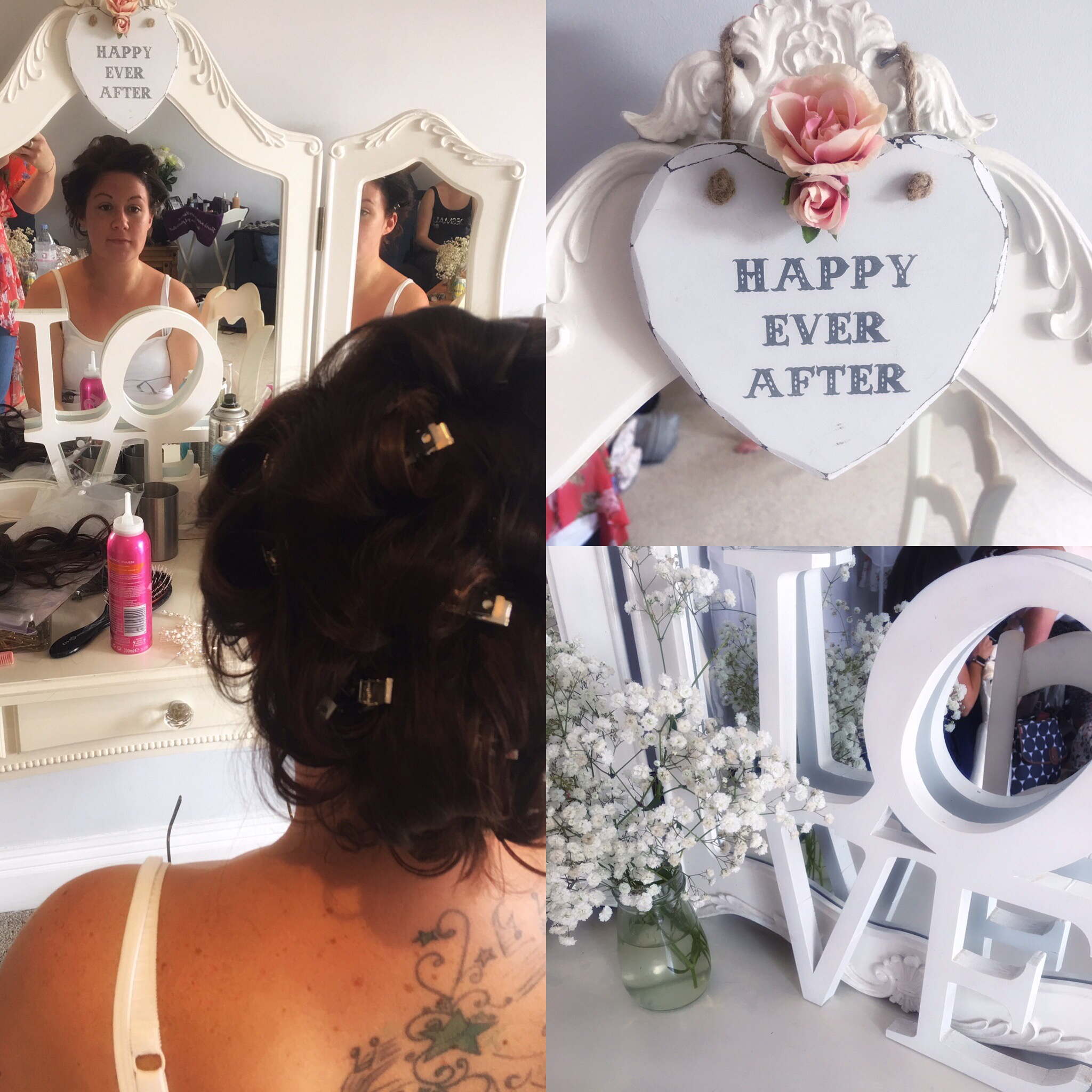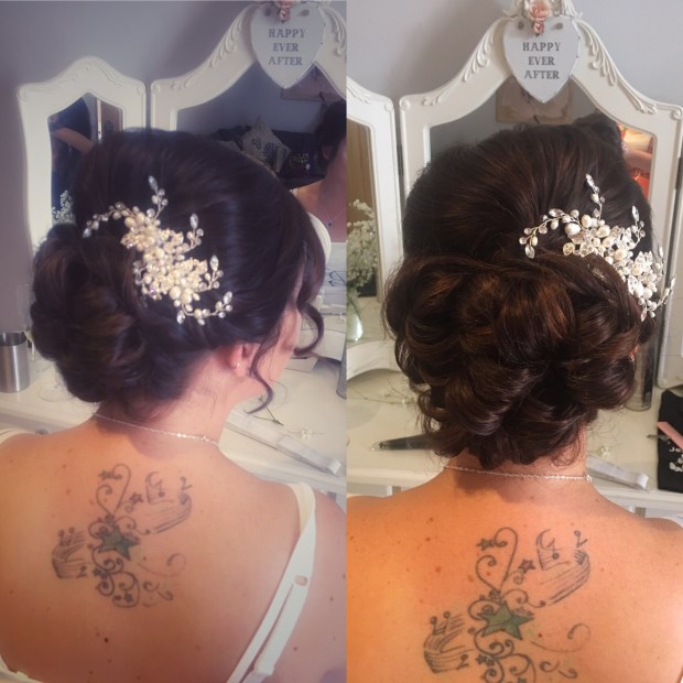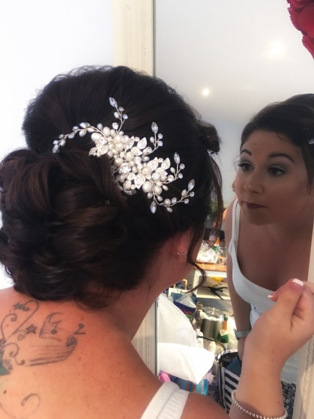 Then my work was nearly done here. The bride to be was in the seat! The hairstyle went really well. It made Sophie’s hair look a lot thicker than it was, and with the weather being really hot and updo was perfect! The hairslide that Sophie chose just topped off the hairstyle and went beautifully with her dress too!