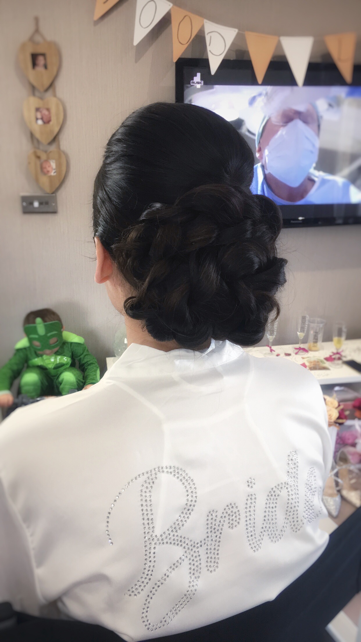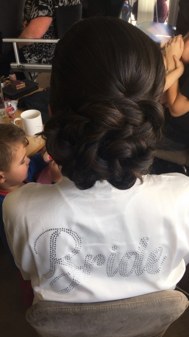 Then I started on the Bridesmaids who didn’t have a clue what to have. Kelly just told me an “updo, something similar but not the same as mine”. So I went for an updo that everybody loves and did a dutch braid chignon style- still keeping to the ‘classy’ theme. The Bridesmaids were also ‘Hair Goals’, with one of them having hair for days! I was in my element!