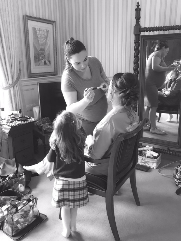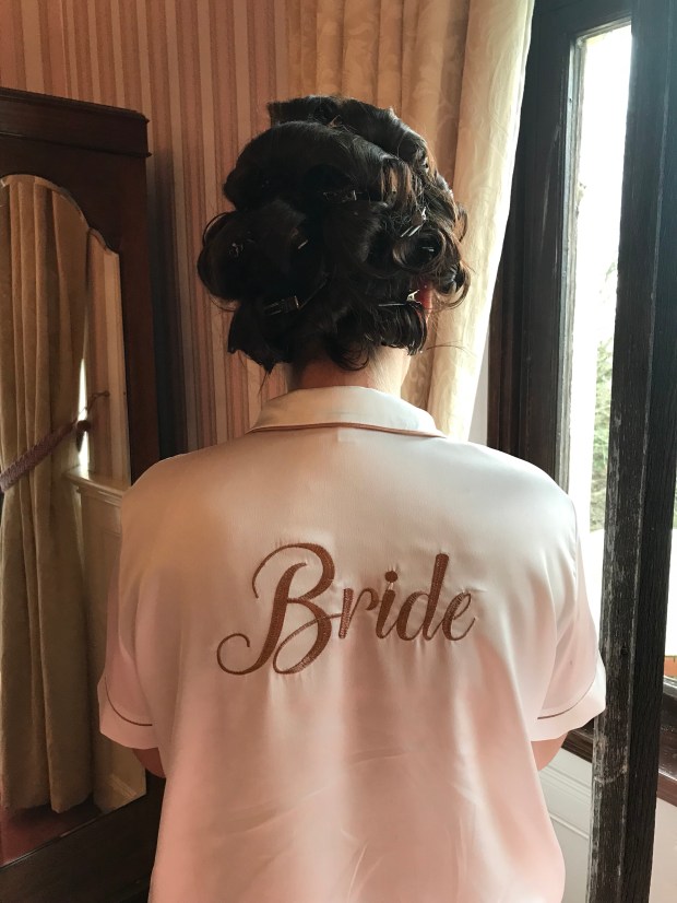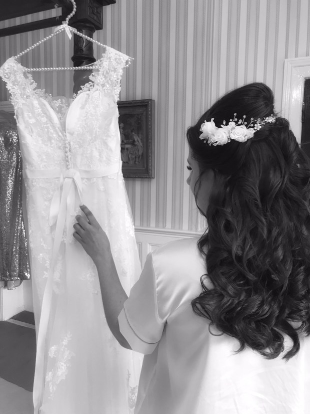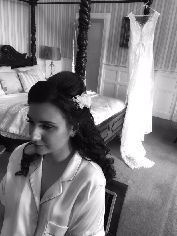 I went up to Kaz’s Bridal Suite to start getting the Bride and Maid of Honour ready. We had a few hiccups in regards to Kaz’s hair extensions along the way with her new set being stolen from her friends car, then another beautiful hearted lady very kindly gave Kaz some, but sadly they came out the wrong shade the day before the wedding day. Eeeeek! So we had a last minute emergency and I just thought with all the bad luck Kaz had had- today was not the day for that to happen. So we managed to get our hands on some extensions (the ones Kaz originally brought to her trial) and they were curled and pinned (how they kept their curl I do not know!), but I promised Kaz that whatever happened she would look and feel beautiful, and that she did!