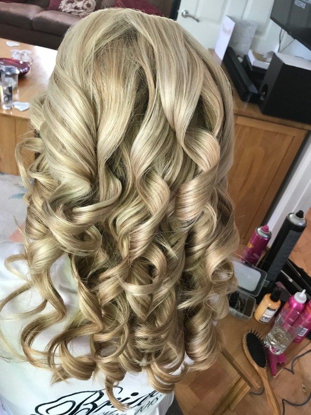 The lovely Melissa Lilly Sharp was already at work on the Makeup and I started by Pin curling Kate’s gorgeous long blonde locks.